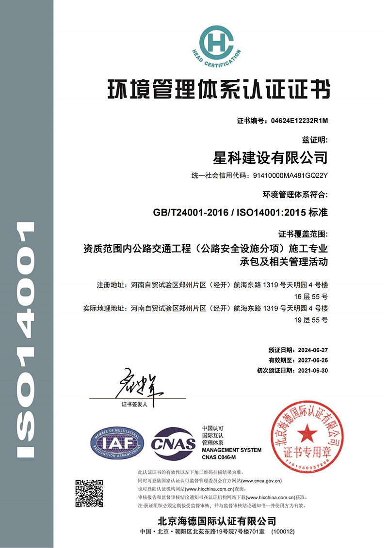 环境管理体系认证证书