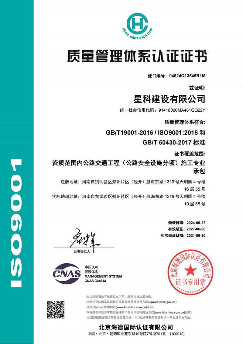 质量管理体系认证证书